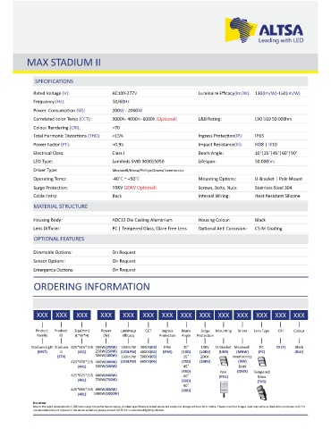 Lens Diffuser: PC | Tempered Glass, Glare Free Lens Op onal An Corrosion: C5-M Coa ng