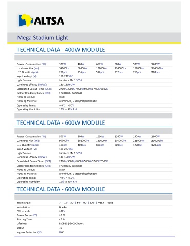 Luminous Flux (lm): 54000lm 68000lm 108000lm 136000lm 162000lm 204000lm
