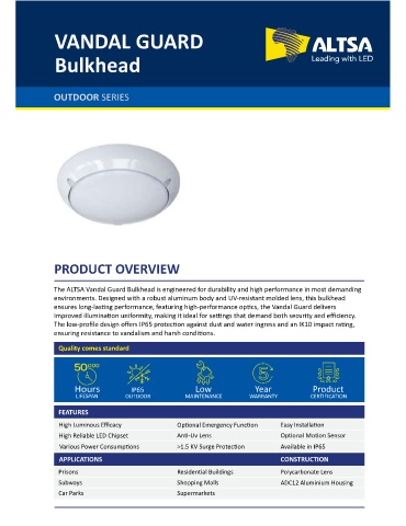 The ALTSA Vandal Guard Bulkhead is engineered for durability and high performance in most demanding