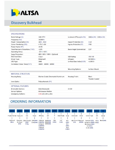 (BUL) Bulkhead (211) 32W(32W) (100LPW) 4000K(04) (IP66) (110) (4KV) (LIS) (MNW) Emergency (EMG) 80 (8)