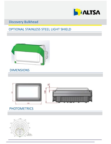 Discovery Bulkhead OPTIONAL STAINLESS STEEL LIGHT SHIELD DIMENSIONS PHOTOMETRICS