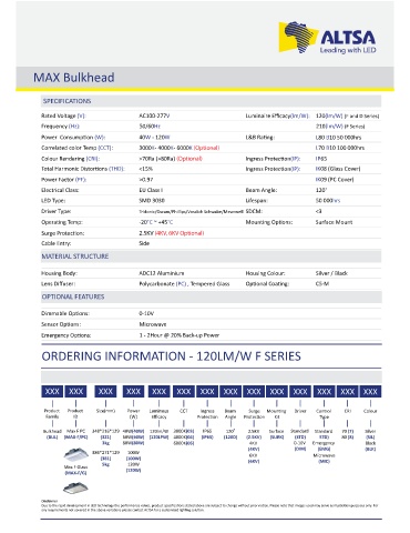 Bulkhead Max F PC 348*216*129 40W(40W) 120lm/W 3000K(03) IP65 120° 2.5KV Surface Standard Standard 70 (7) Silver