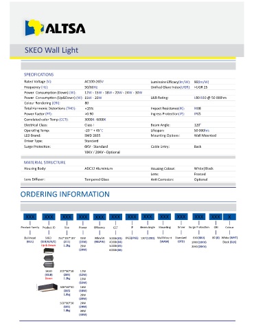 Product Family Product ID Size Power Efficency CCT IP Beam Angle Moun ng Driver Surge Protec on CRI Colour