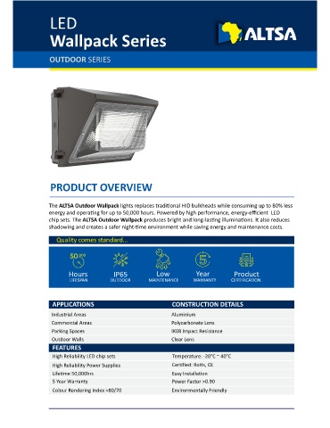 chip sets. The ALTSA Outdoor Wallpack produces bright and long-las ng illumina ons. It also reduces