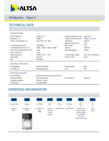 Wall Light Wallpack Type C 204*140*79mm 15W (15) 130lm/W (130) Standard (STD) Standard (STD) 70 (7)