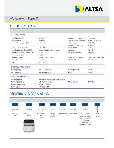 Wall Light Wallpack Type D 246*216*120mm 60W (60) 130lm/W (130) Standard (STD) Standard (STD) 70 (7)