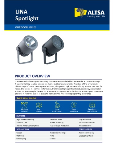 Illuminate with Efficiency and Versa lity, discover the unparalleled brilliance of the ALTSA Lina Spotlight.