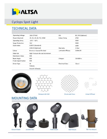 Opera ng Voltage 100-277VAC CRI: 80 / 90 (Op onal)