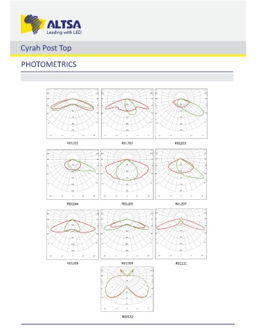 Cyrah Post Top PHOTOMETRICS R01201 R01202 R01203 R01204 R01205 R01207 R01208 R01209 R01211 R00C52