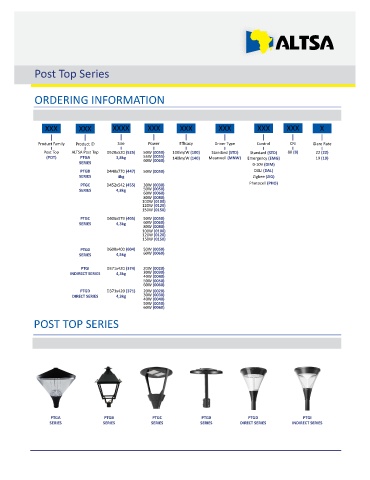 Post Top ALTSA Post Top D520x520 (525) 50W (0050) 100lm/W (100) Standard (STD) Standard (STD) 80 (8) 22 (22)
