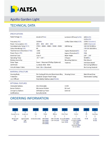 Power Factor (PF): >0.90 Ingress Protec on(IP): IP66