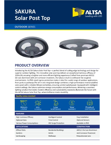 the ALTSA Sakura Solar Post Top, where brilliance meets durability