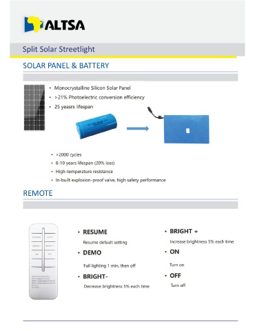 Split Solar Streetlight SOLAR PANEL & BATTERY REMOTE