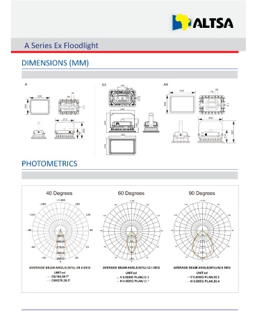 A Series Ex Floodlight DIMENSIONS (MM) PHOTOMETRICS