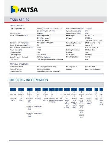 Product Family Product ID Size(mm) Power Efficency CCT IP IK Beam Angle Cable Entry Moun ng Control Type CRI Surge