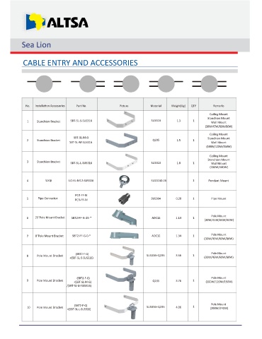 No. Installa on Accessories Part No. Picture Material Weight(Kg) QTY Remarks