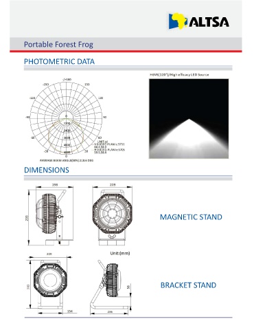 Portable Forest Frog PHOTOMETRIC DATA DIMENSIONS MAGNETIC STAND BRACKET STAND